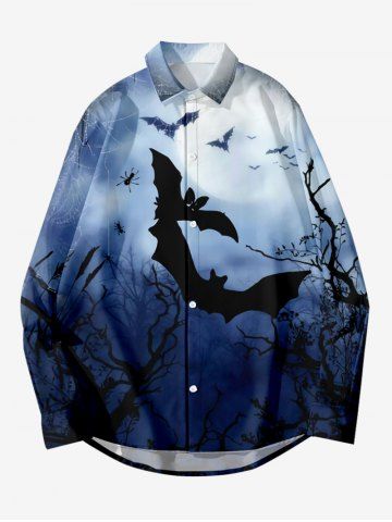 Men > Plus Size Bat Tree Moon Ombre Galaxy Print Halloween Button Shirt For Men