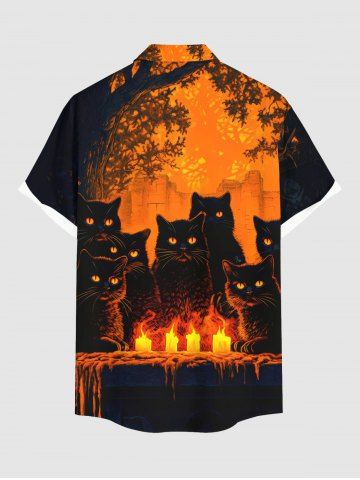 Men > Plus Size Candle Cat Tree Print Halloween Button Pocket Shirt For Men