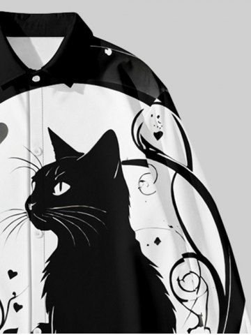 Men > Plus Size Cat Heart Flower Ghost Print Halloween Buttons Shirt For Men