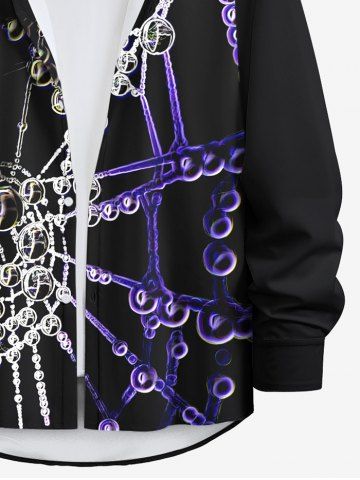 Plus Size Chain Bead Spider Web Print Halloween Button Shirt For Men - Black - M
