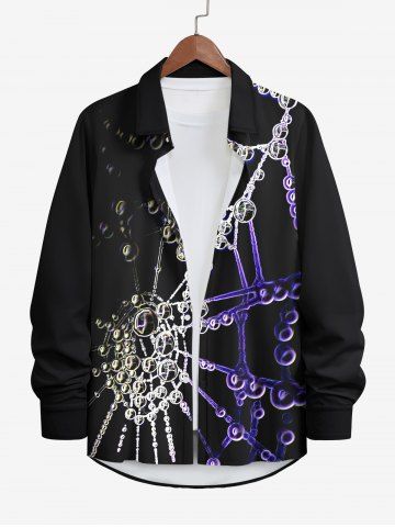 Plus Size Chain Bead Spider Web Print Halloween Button Shirt For Men - Black - L