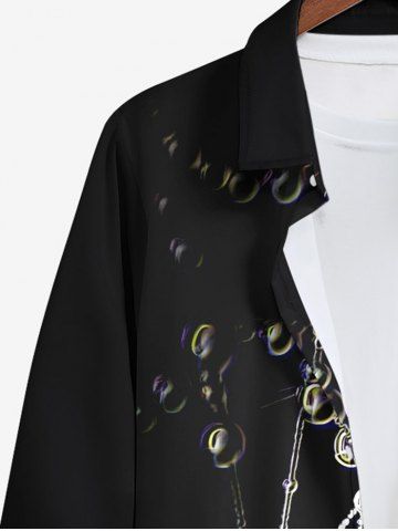 Plus Size Chain Bead Spider Web Print Halloween Button Shirt For Men - Black - 4xl