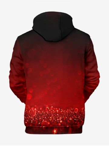 Plus Size Christmas Ball Bowknot Bell Sparkling Sequin 3D Print Pocket Drawstring Hoodie For Men - Cherry Red - 5xl
