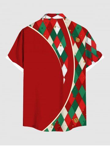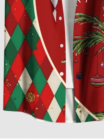 Plus Size Christmas Ball Coconut Tree Plaid Print Buttons Pocket Shirt For Men - Red - S
