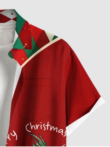 Plus Size Christmas Ball Coconut Tree Plaid Print Buttons Pocket Shirt For Men - Red - 3xl
