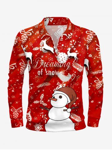 Plus Size Christmas Ball Elk Candy Snowman Print Zipper Polo Shirt For Men - Red - M
