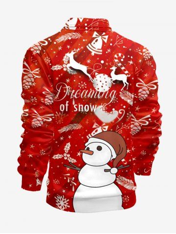 Plus Size Christmas Ball Elk Candy Snowman Print Zipper Polo Shirt For Men - Red - 3xl