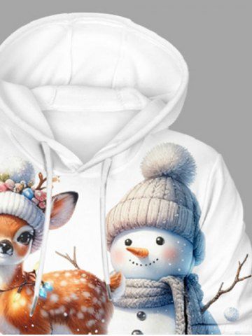 Plus Size Christmas Ball Elk Snowman Ice Cube Print Drawstring Pockets Hoodie For Men - White - M