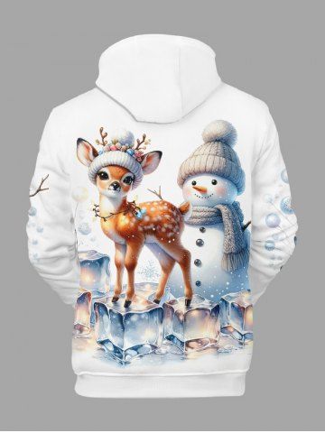 Plus Size Christmas Ball Elk Snowman Ice Cube Print Drawstring Pockets Hoodie For Men - White - 5xl