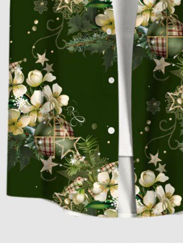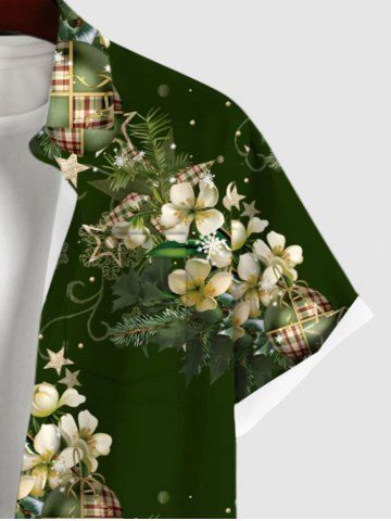 Plus Size Christmas Ball Floral Stars Galaxy Print Button Pocket Shirt For Men - Green - L