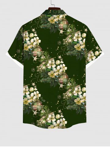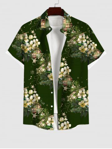 Plus Size Christmas Ball Floral Stars Galaxy Print Button Pocket Shirt For Men - Green - Xl