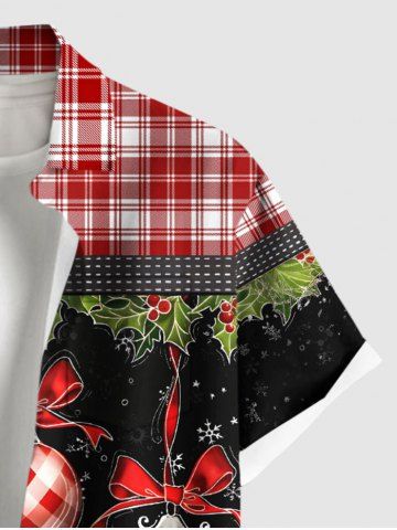 Plus Size Christmas Ball Holly Fruit Snowflake Plaid Print Buttons Pocket Shirt For Men - Black - 3xl