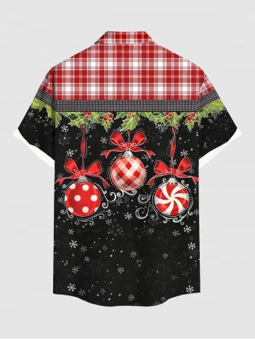 Plus Size Christmas Ball Holly Fruit Snowflake Plaid Print Buttons Pocket Shirt For Men - Black - 5xl