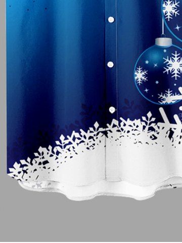Plus Size Christmas Ball Ombre Snowflake Print Button Pocket Shirt For Men - Blue - S