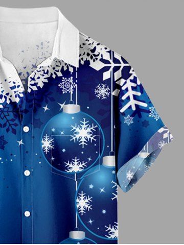 Plus Size Christmas Ball Ombre Snowflake Print Button Pocket Shirt For Men - Blue - 4xl