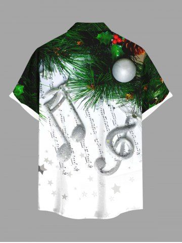 Plus Size Christmas Ball Pinecone Leaf Music Symbol Print Button Pocket Shirt For Men - Green - 3xl
