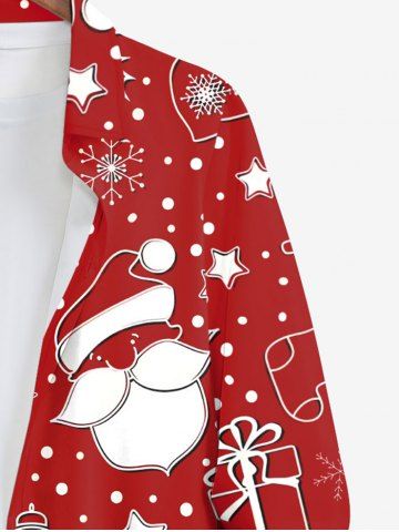 Plus Size Christmas Ball Santa Claus Sack Snowflake Star Candy Stocking Print Buttons Pocket Shirt For Men - Red - 6xl