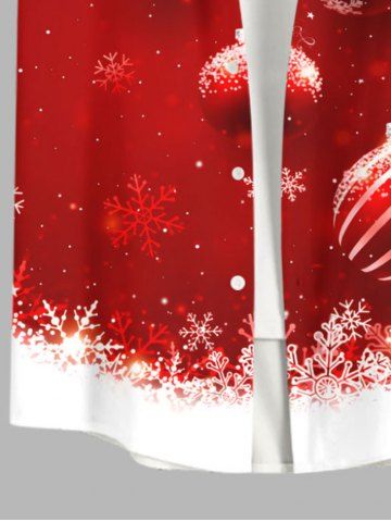 Plus Size Christmas Ball Snowflake Colorblock Print Buttons Pocket Shirt For Men - Red - 3xl