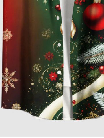 Plus Size Christmas Ball Snowflake Print Ombre Button Pocket Shirt For Men - Green - 2xl