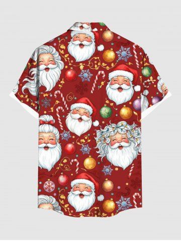Plus Size Christmas Ball Snowflake Santa Claus Candy Print Button Pocket Shirt For Men - Red Wine - 5xl