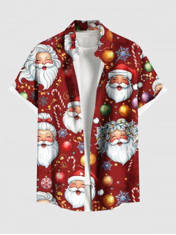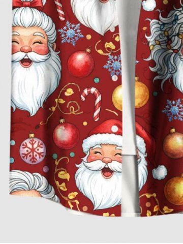 Plus Size Christmas Ball Snowflake Santa Claus Candy Print Button Pocket Shirt For Men - Red Wine - 6xl
