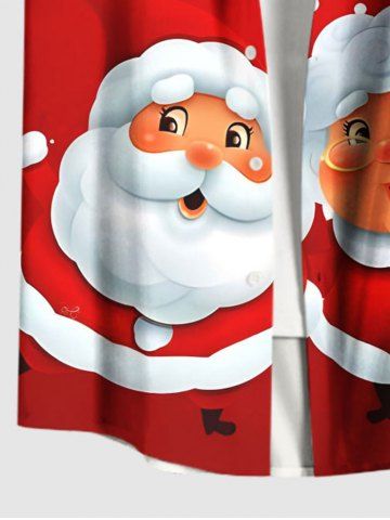 Plus Size Christmas Ball Snowflake Santa Claus Print Button Pocket Shirt For Men - Red - M