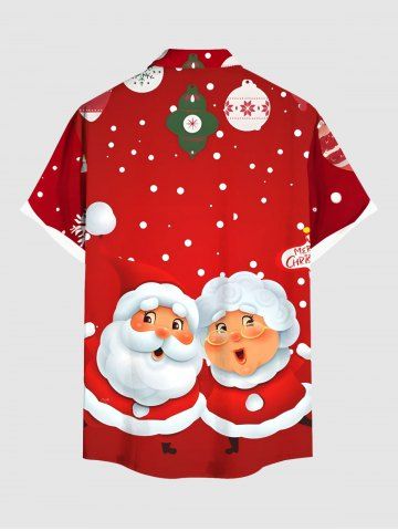 Plus Size Christmas Ball Snowflake Santa Claus Print Button Pocket Shirt For Men - Red - 2xl