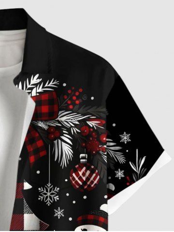 Plus Size Christmas Ball Snowflake Snowman Plaid Bowknot Print Buttons Pocket Shirt For Men - Black - S