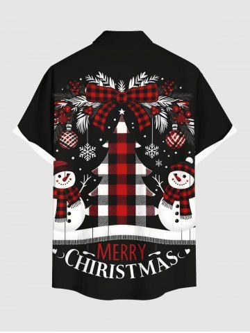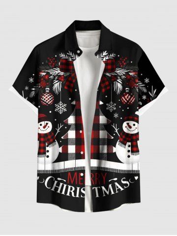 Plus Size Christmas Ball Snowflake Snowman Plaid Bowknot Print Buttons Pocket Shirt For Men - Black - 5xl