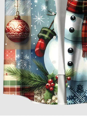Plus Size Christmas Ball Snowflake Snowman Plaid Print Button Pocket Shirt For Men - Red - 6xl