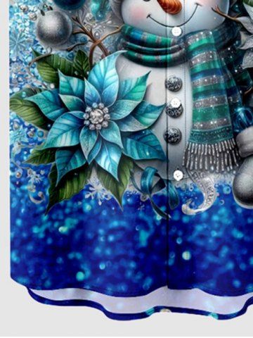 Plus Size Christmas Ball Snowman Flower Leaf Ombre Sparkling Sequin Glitter 3D Print Buttons Pocket Shirt For Men - Blue - 3xl