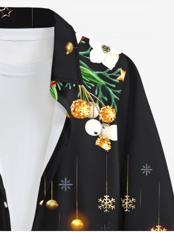 Plus Size Christmas Ball Star Snowflake Bell Print Button Long Sleeves Shirt For Men - Black - 7xl