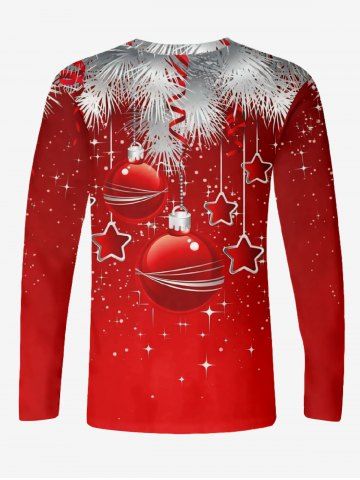 Plus Size Christmas Ball Star Tassel Leaf Glitter 3D Print Long Sleeves T-shirt - Red - 5xl