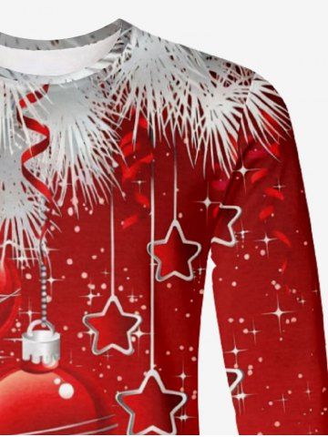 Plus Size Christmas Ball Star Tassel Leaf Glitter 3D Print Long Sleeves T-shirt - Red - 6xl