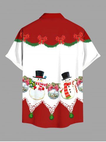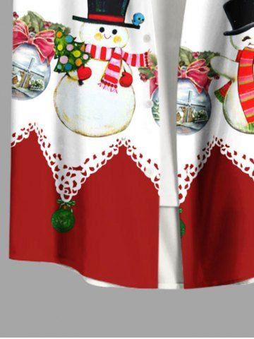 Plus Size Christmas Ball Tree Snowman Bowknot Colorblock Print Buttons Pocket Shirt For Men - Red - 3xl