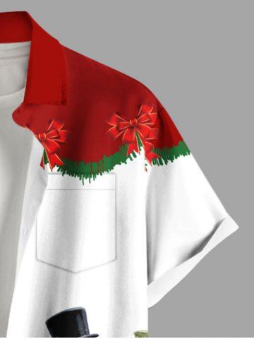 Plus Size Christmas Ball Tree Snowman Bowknot Colorblock Print Buttons Pocket Shirt For Men - Red - 6xl