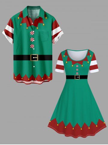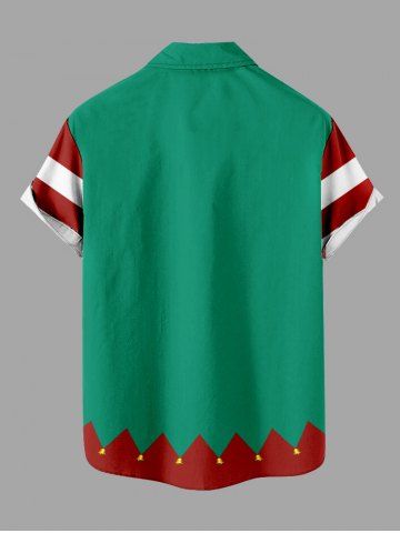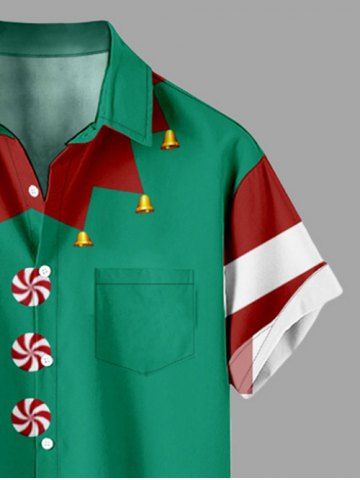 Plus Size Christmas Bells Candy Clown Costume Print Buttons Pocket Shirt For Men - Green - L