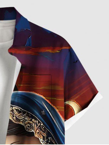 Plus Size Christmas Birth of Jesus Coconut Tree Ombre Dusk Print Button Pocket Shirt For Men - Black - 6xl