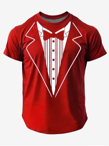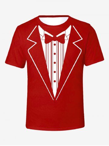 Plus Size Christmas Bowknot Lapel Collar Print T-shirt For Men - Red - 2xl
