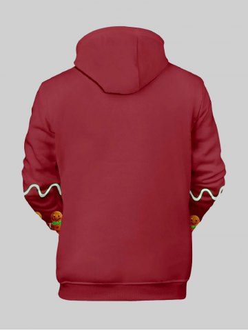 Plus Size Christmas Buttons Gingerbread Man Wavy Line Colorblock Print Pocket Drawstring Hoodie For Men - Deep Red - Xl