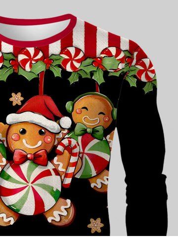 Plus Size Christmas Candy Holy Fruit Gingerbread Star Print T-shirt For Men - Black - 6xl