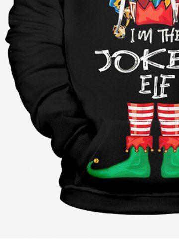 Plus Size Christmas Clown Elf Print Pullover Long Sleeves Hoodie For Men - Black - M
