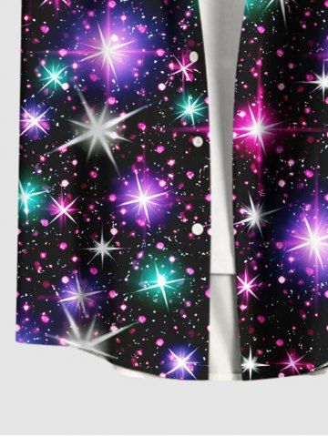 Plus Size Christmas Colorful Glitter Sparkling Stars Galaxy Print Button Pocket Shirt For Men - Black - M
