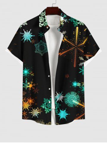 Plus Size Christmas Colorful Ombre Snowflake Print Button Pocket Shirt For Men - Black - M