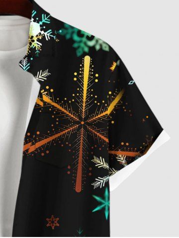 Plus Size Christmas Colorful Ombre Snowflake Print Button Pocket Shirt For Men - Black - Xl