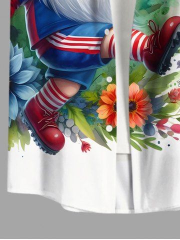 Plus Size Christmas Dwarf Football Watercolor Floral Leaf Branch Print Button Pocket Shirt For Men - White - L