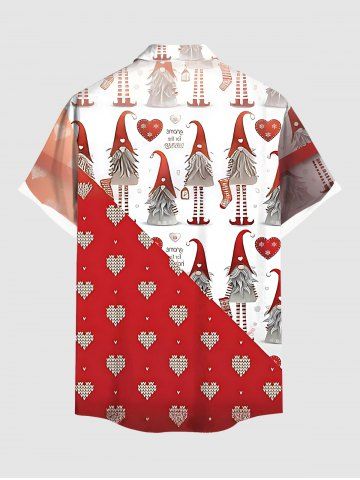 Plus Size Christmas Dwarf Heart Bowknot Gift Print Button Pocket Shirt For Men - Red - 2xl