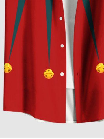 Plus Size Christmas Elf Bells Print Buttons Pocket Shirt For Men - Red - 5xl