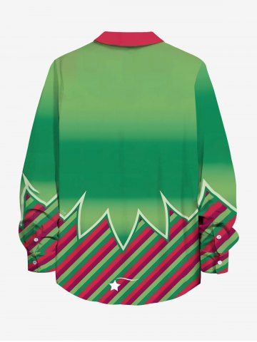 Plus Size Christmas Elf Candy Print Button Long Sleeves Shirt For Men - Green - 2xl