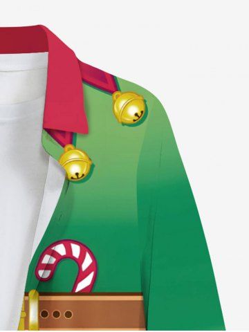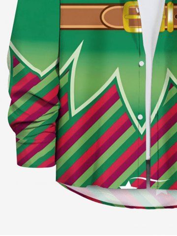 Plus Size Christmas Elf Candy Print Button Long Sleeves Shirt For Men - Green - 4xl
